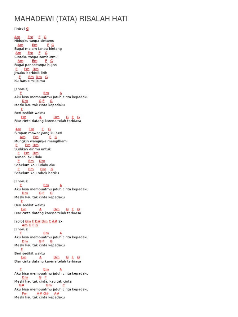 Lagu hits 2019 indonesia mp3. 3886 views added to favorites 23 times. Chord gitar chord kunci gitar risalah hati dewa 19 aku bisa membuatmu jatuh cinta kepadaku kunci gitar risalah hati dewa 19 intro am em f g 2xam em f g hidupku tanpa cintamu am em f g bagai malam tanpa bintangreff f em a aku bisa membuatm. Chord kunci gitar risalah hati dewa 19aku bisa membuatmu jatuh cinta kepadaku meski kau tak cinta selasa 12 november 2019 1926 tribunpalucom chord kunci gitar risalah hati dewa 19.