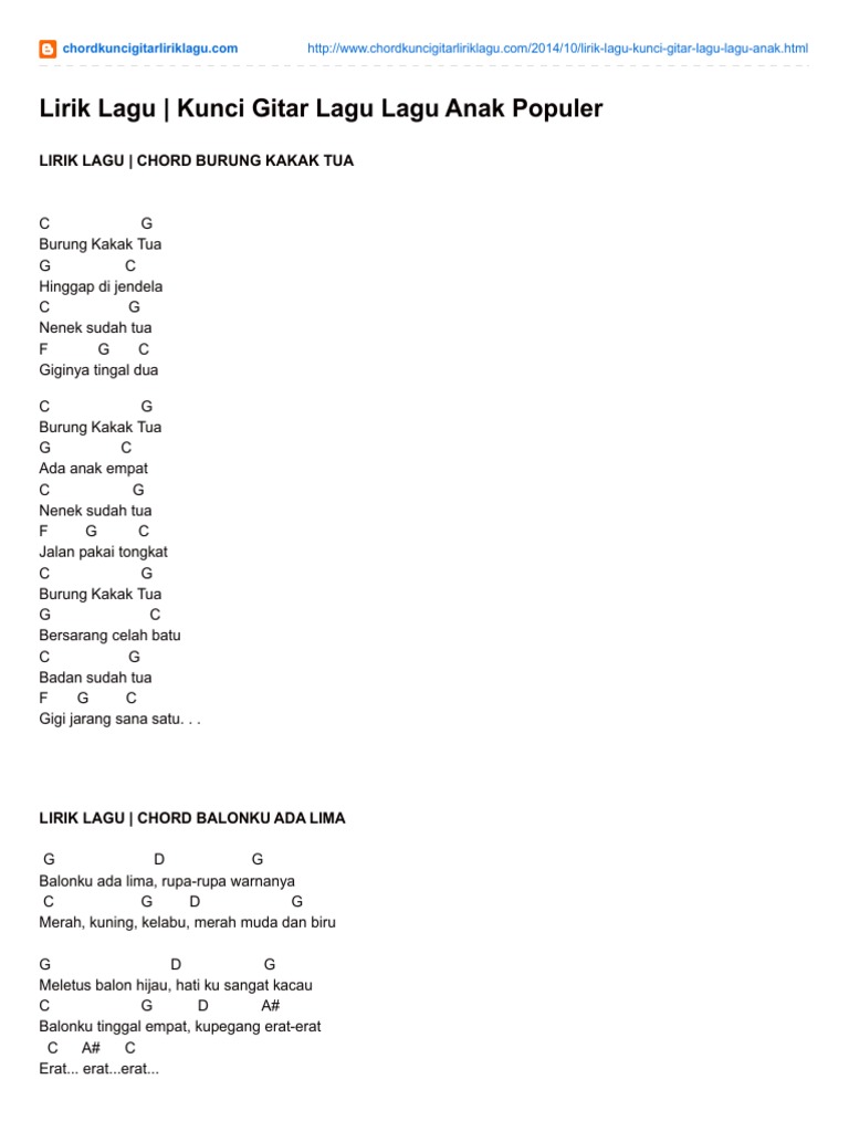 • 15 Lagu Anak Paling Populer Lengkap Dengan Lirik Kunci Gitar Pingkoweb Com