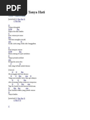 Chord lagu tanya hati Indeed recently has been sought by users around us, perhaps one of you personally. People are now accustomed to using the net in gadgets to view video and image data for inspiration, and according to the name of this post I will talk about about Chord Lagu Tanya Hati.