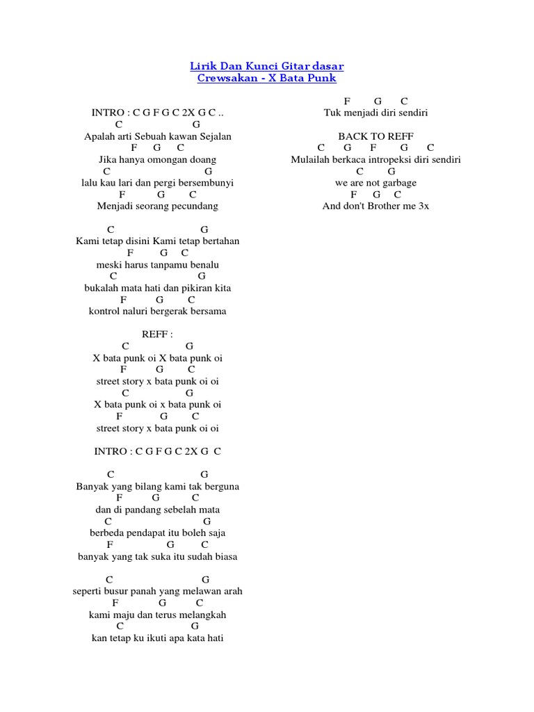 Chord dan lyrik lagu crewsakan x bata punk kunci dasarnya. Chord kunci gitar sex punk punk kampung. C g f g c 2x g c.