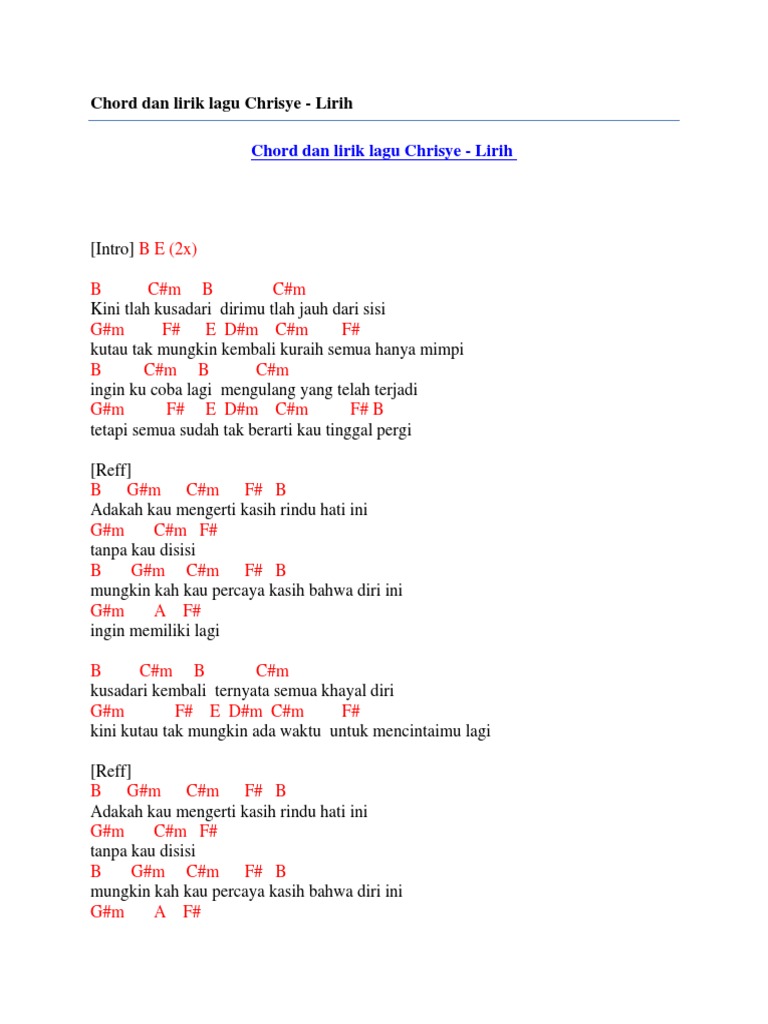 Chord dan lirik mungkinkah stinky intro. C em f g 2x verse. Intro c em f g x2 verse c em tetes air mata basahi pipimu f g di saat kita kan berpisah c em terucapkan janji padamu kasihku f g takkan kulupakan dirimu pre chorus f g c f g c begi chord mungkinkah ver 2 stinky kunci gitar dasar mudah at ultimate guitarcom.