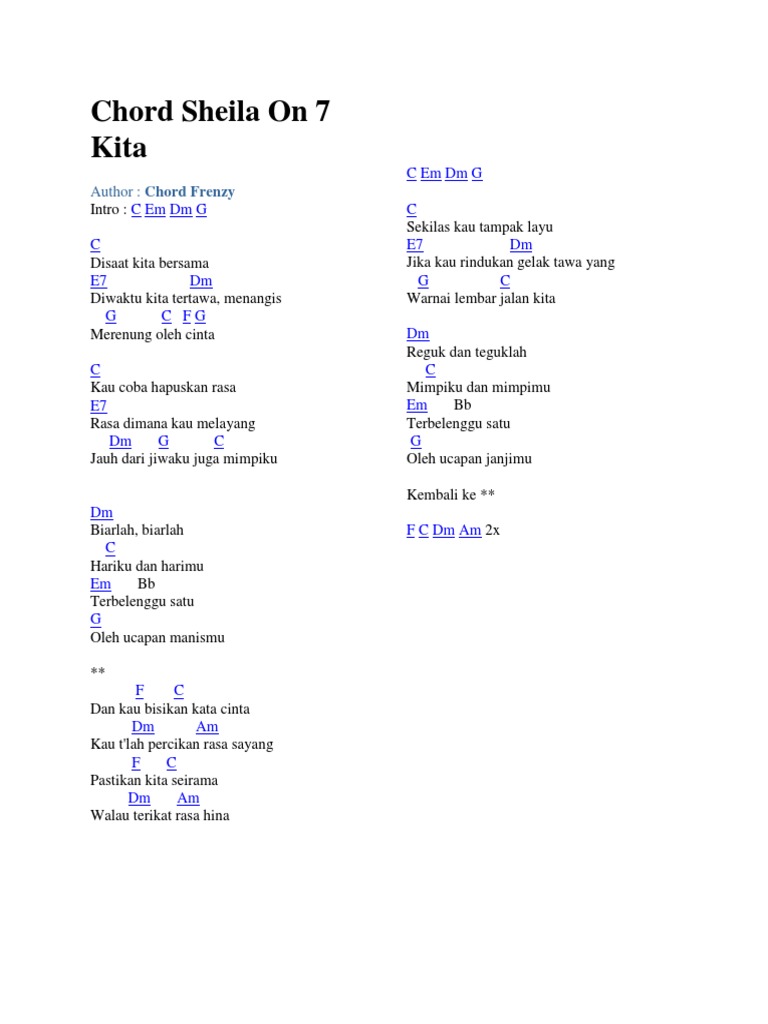 Chord sheila on 7 kita Indeed lately has been sought by users around us, maybe one of you. Individuals now are accustomed to using the internet in gadgets to view video and image data for inspiration, and according to the name of this post I will talk about about Chord Sheila On 7 Kita.