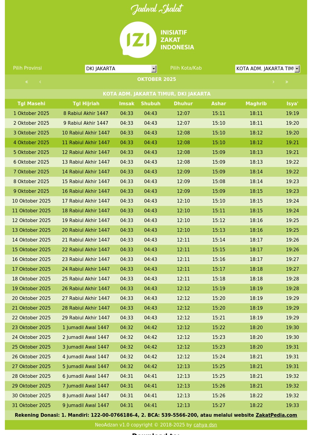 Jadwal Sholat Jakarta, Jadwal Shalat Inisiatif Zakat Indonesia