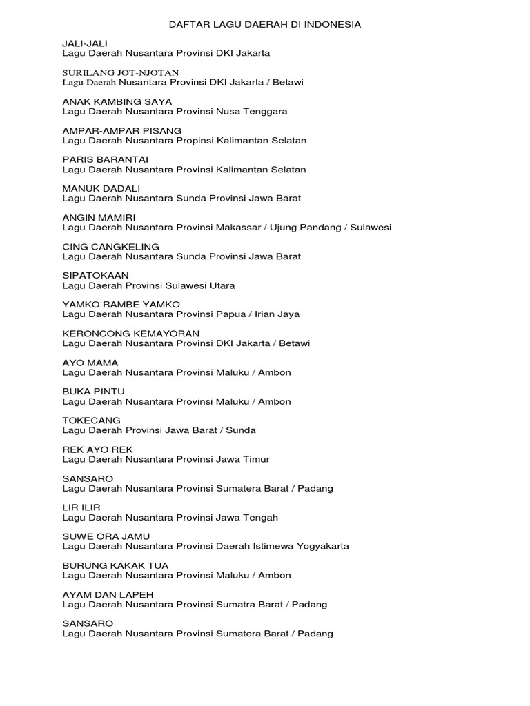 Lagu Daerah Betawi Jali Jali, Doc Kumpulan 7 Lagu Daerah Dewangga Sanjaya Academia Edu