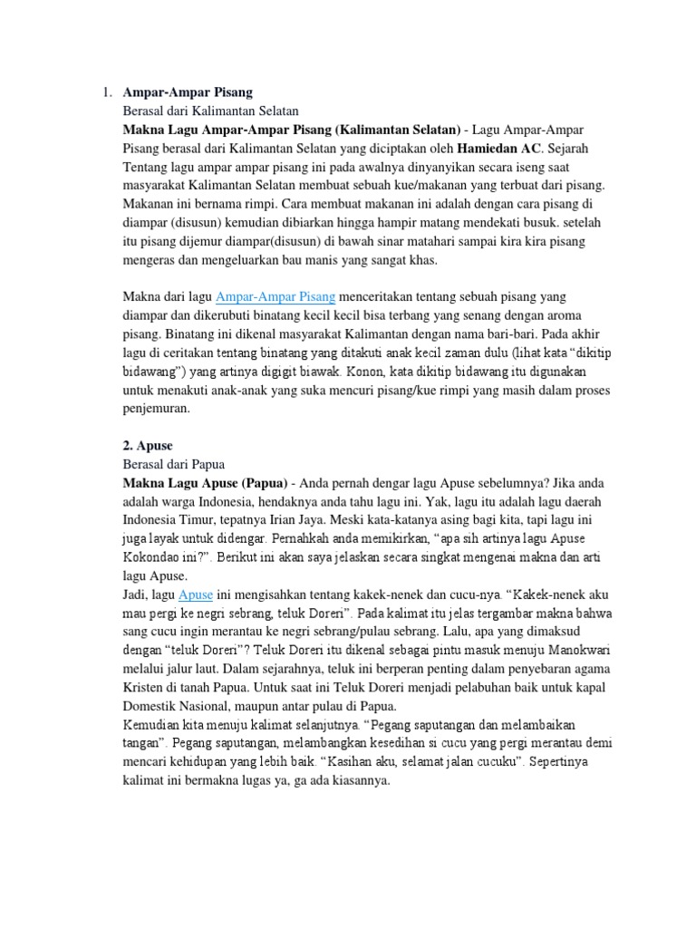 Lirik dan makna lagu apuse yakni pembahasan utama bahan pelajaran seni budaya yang akan dijelaskan dengan lengkap dan detail pada materi belajar berikut ini. 7 september 2020 1015 wib. Senin 21 september 2020 1421 reporter.
