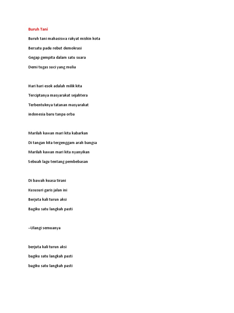 Lirik lagu buruh tani pembebasan Indeed recently is being hunted by users around us, perhaps one of you personally. Individuals now are accustomed to using the net in gadgets to view image and video data for inspiration, and according to the title of the article I will discuss about Lirik Lagu Buruh Tani Pembebasan.