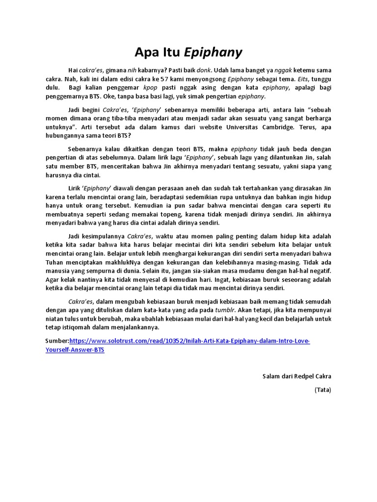 • Inilah Arti Kata Epiphany Dalam Intro Love Yourself Answer Bts