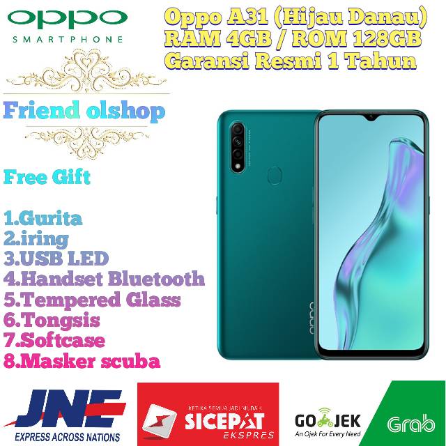 Detail harga terakhir kali diperbaharui pada november 2020. Network technologygsm hspa lte 2g bandsgsm 850 900 1800 1900 sim 1 sim 2 3g bandshsdpa 850 900 2100 4g bandslte unspecified speedhspa 422576 mbps lte a launch announced2020. Smartphone oppo a31 cph2015 4128gb hijau danau a camera for every occasion 12mp triple rear camera2 konfigurasi tiga lensa pada oppo a31 memberikan anda inspirasi untuk menangkap lebih banyak gambar dengan cara yang tak terpikirkan sebelumnya.