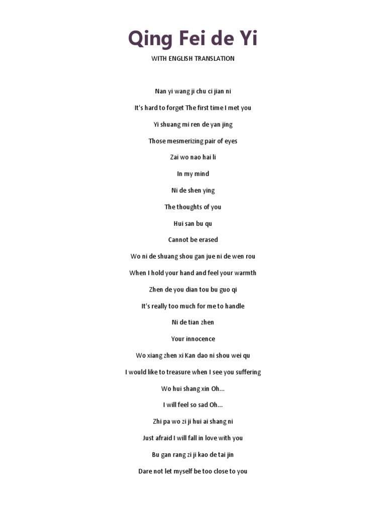 Find, Read, And Discover Qing Fei De Yi Chord, Such Us: